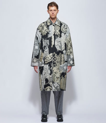 Vintage tasseled textile jacket in ivory featuring deadstock nylon tulle overlay in black. Spread collar. Center front zip closure. Two patch pockets at chest. Single interior patch pocket left chest side. Contrast stitching at quilting. Raw edge hems. Silk habotai lined. 100% deadstock nylon tulle. Filll: 100% cotton. Lining: 100% cotton. Dry clean only. Made in New York City. Model is wearing size M. Model is 5'10" and Chest 32 / Waist 25 / Hip 36.