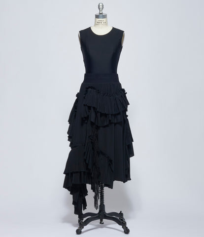 Cotton denim wide leg pants in blue featuring paint splatters allover. Elasticized Alainpaul logo waistband. Button fly. Two side pockets with additional coin pocket at front. Two patch pockets at back. Curved seam at each front leg. Belt loops at waist. 100% cotton. Made in Portugal. Dry clean only. Mannequin is wearing size S. Mannequin size 6.