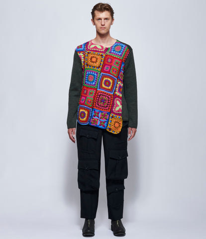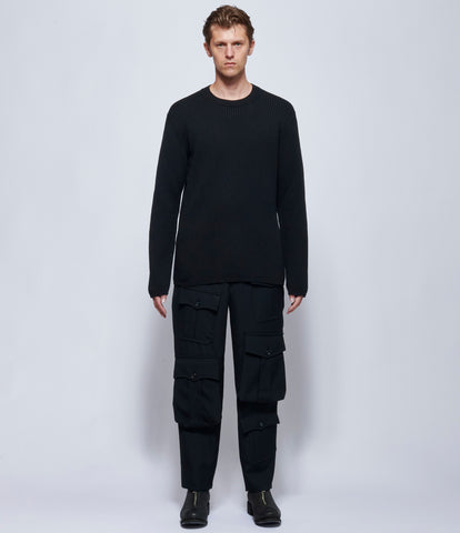 Crinkled polyester twill tapered leg pants in black. Zip fly single hook and bar and single button closure. Two pleats at each front leg. Two welt pockets at side seams waist front. Two welt pockets at back; left side features flap and single button closure. Belt loops at waist. 100% polyester. Dry clean only. JP sizing. Made in Japan. Model is wearing size M. Model is 6'2" and Chest 38 / Shoulder 19.5 / Waist 31 / Hip 37.5.